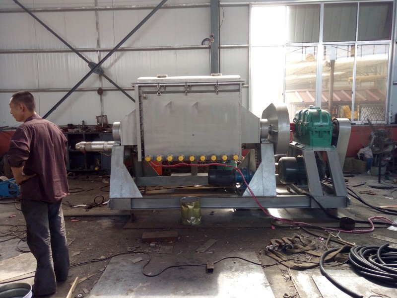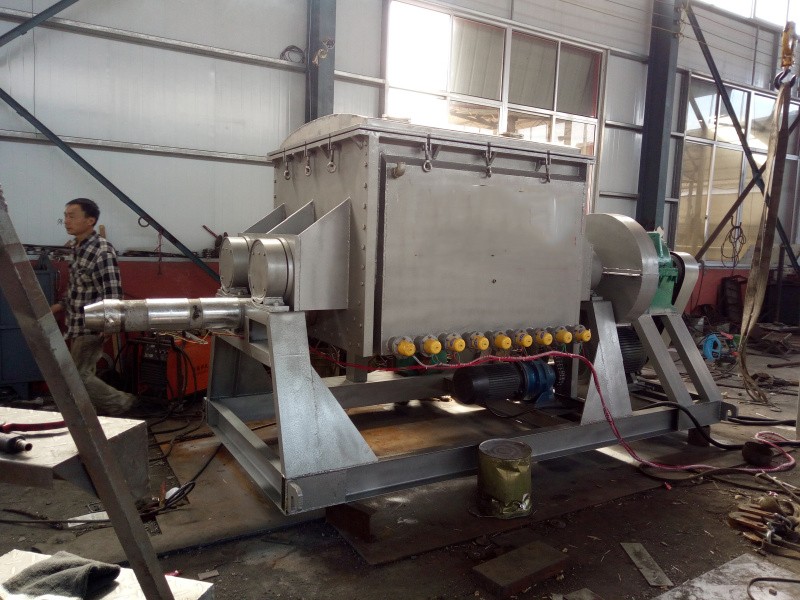 螺桿擠出捏合機(jī)由不銹鋼材質(zhì)制成,配有快慢攪拌槳減速機(jī)2臺,螺桿出料,設(shè)備外有外型腔。